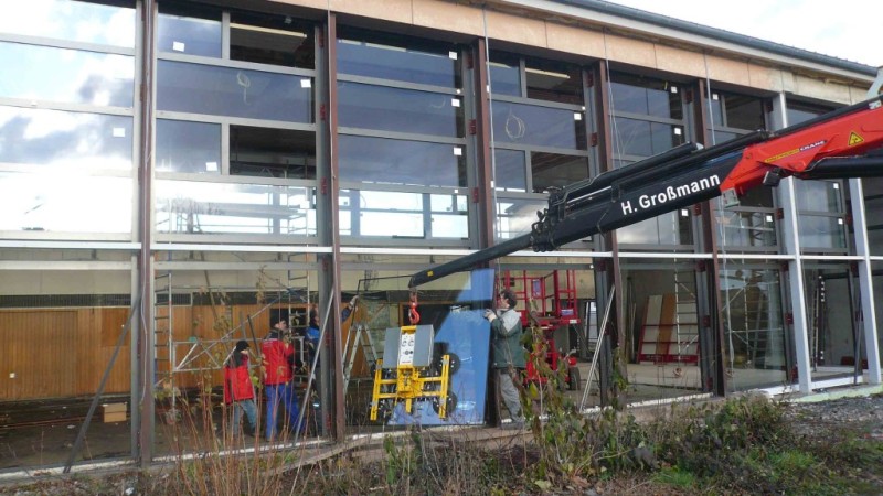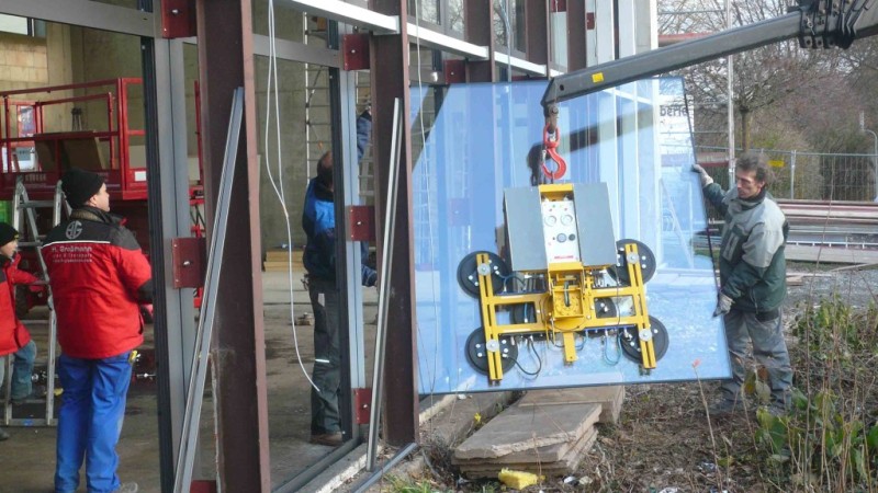 Aufbau von Aluminium Fassaden Elementen mit Verglasung für Sporthalle